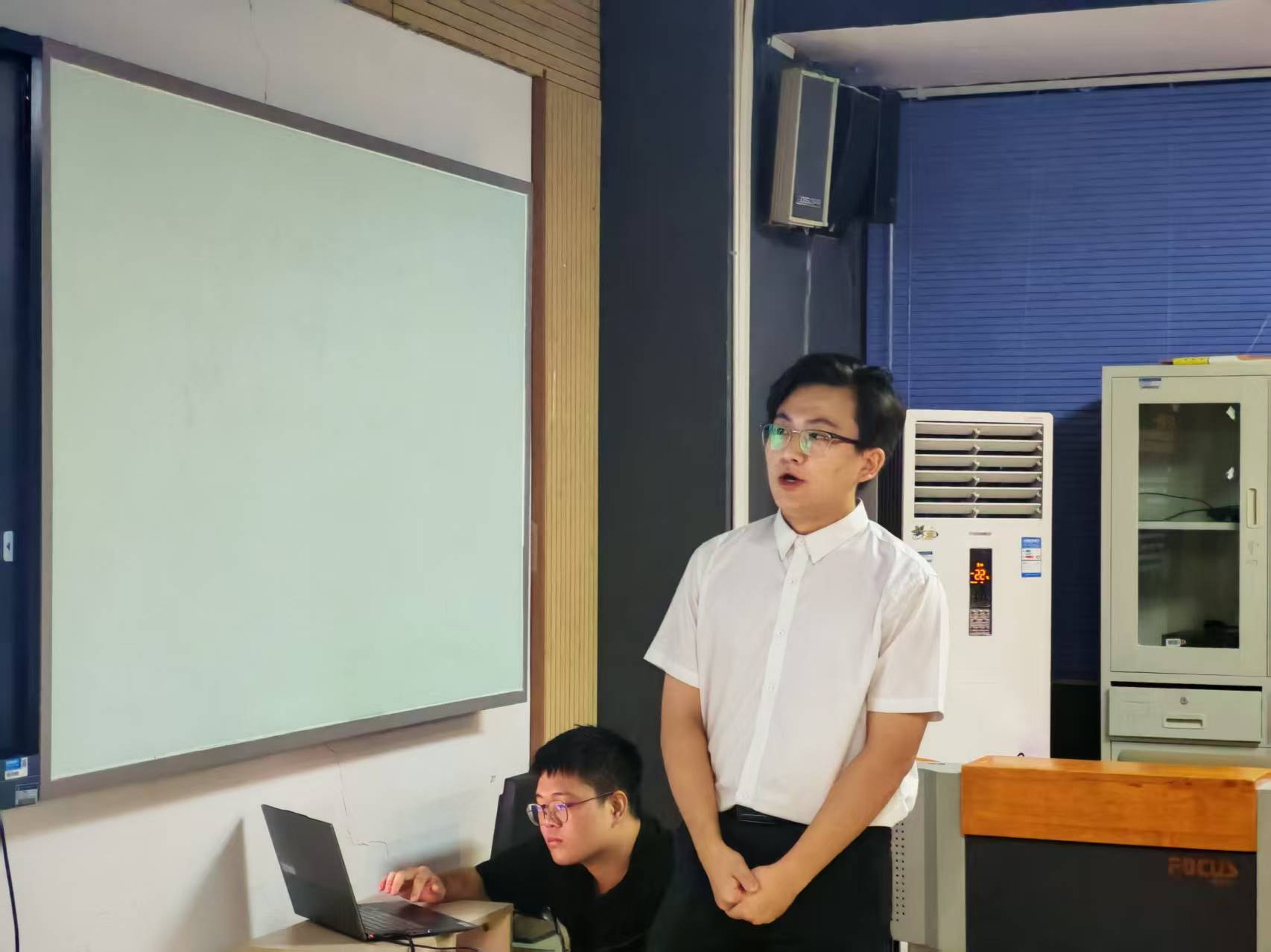 图1 主持人开场 本次沙龙活动主持人首先详细介绍了本次活动的背景、目的以及整体流程安排,确保每位参与者都能对活动有一个全面的了解。紧接着逐一隆重介绍了到场的各位嘉宾,调动起了现场的氛围,整个会场充满了积极向上的气息。 随后,按照预先安排的顺序,有请各项目代表依次走上台前,他们对各自负责的项目进行了扼要介绍。在介绍过程中,代表们不仅分享了所在学院在创新研究和创业实践方面取得的最新成果,还坦诚地讲述了在项目推进过程中遇到的各种挑战和积累的宝贵经验教训。他们以口述的形式,生动地向全体参与者展示了小组研讨的丰硕成果,内容涵盖了项目的创意来源、技术可行性分析、商业模式构建以及未来发展规划等多个方面的关键信息,使得在场的每个人都对项目有了更为深入的了解。 在各项目代表的展示环节结束后,活动进入了近半个小时的自由交流时间。此时,会场内的气氛变得更加热烈和浓厚,参与者们纷纷抓住这一难得的机会,与项目代表以及其他嘉宾进行深入交流和探讨。 自由交流环节结束后,参会的老师们对本次沙龙活动进行了全面而细致的总结。老师们首先回顾了活动的主要内容以及取得的显著成果,随后,他们着重强调了跨院合作在推动创新创业过程中的重要性和必要性,并针对双创项目的未来发展方向提出了富有前瞻性的展望和建议,为在场的每一位参与者指明了后续努力的方向和目标。 在老师们的总结发言结束后,主持人再次走上前台,宣布本次沙龙活动圆满结束。随后,主持人有序地组织参与者们依次离场给此次活动画上了圆满的句号。